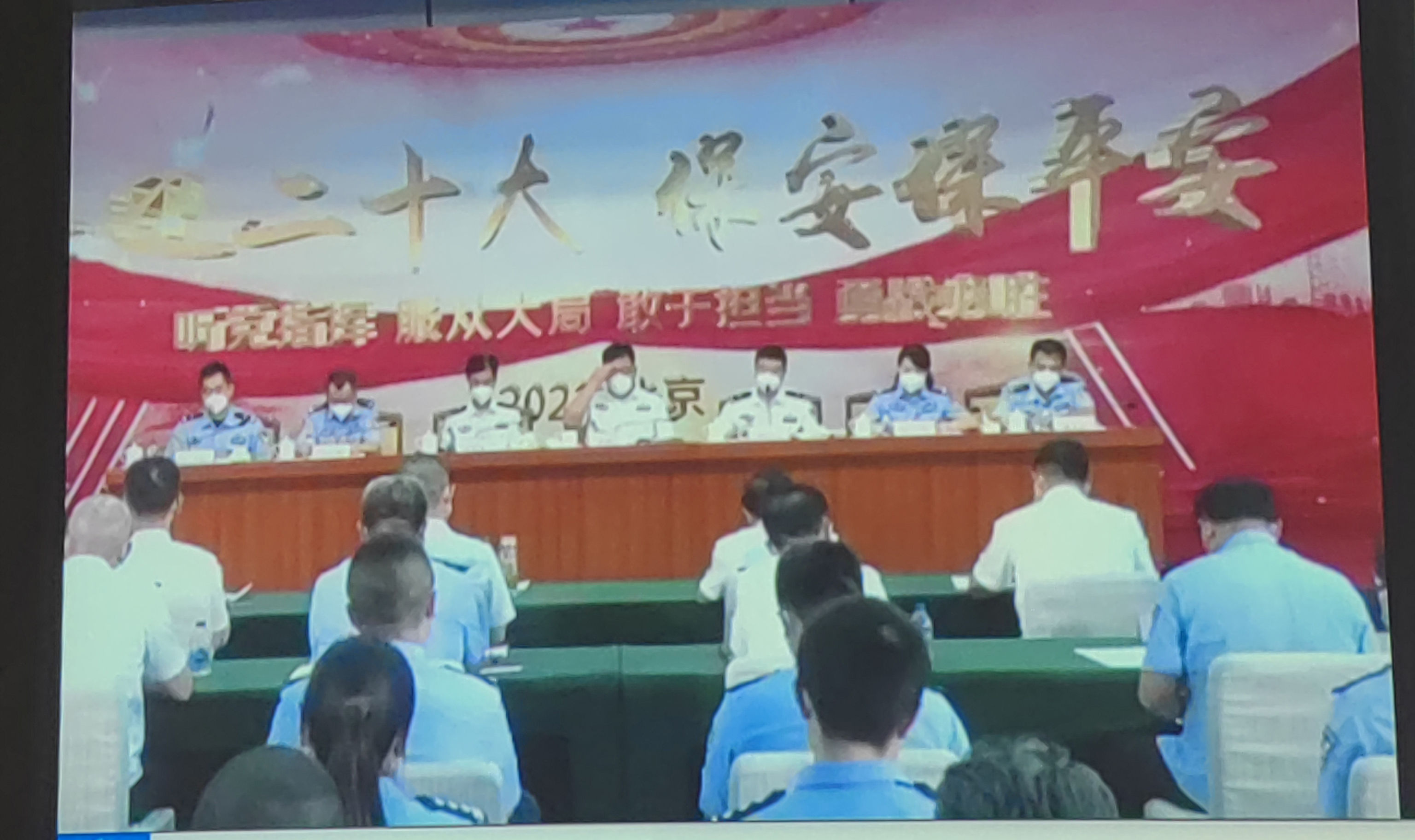 中国共产党第二十次全国代表大会将于十月份在北京举行。为切实加强安全管理,发出决战动员令、吹响决战冲锋号,进一步坚定敢打必胜的信心决心,督促保安服务行业做好临战前的充分准备,激励广大保安员为忠诚而战、为使命而战、为荣誉而战,切实做好党的“二十大”期间安全维稳工作。9月29日下午,北京保安服务行业开展“喜迎二十大 保安保平安”誓师大会。出席誓师大会的领导有:市公安局治安管理总队总队长杨峻岭、市公安局治安管理总队副总队长毛明满、市公安局公共交通安全保卫总队副总队长刘根生、市公安局治安管理总队保安管理支队支队长刘炜、市公安局治安管理总队保安管理支队副支队长任鹏、市公安局内部单位保卫局处置大队大队长耿红蕾、市公安局天安门分局治安大队大队长胡庆松等。各保安公司及基层保安员通过云会议系统等形式参加誓师大会。