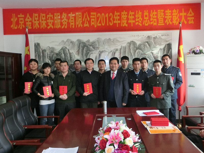 日下午,北京金保保安服务有限公司,召开了2013年度年终总结暨表彰大会,会上公司总经理杜贺龙同志,宣读了2013年度取得优异成绩的优秀保安大队,表彰了2013年度优秀员工。